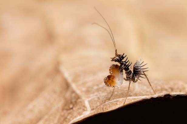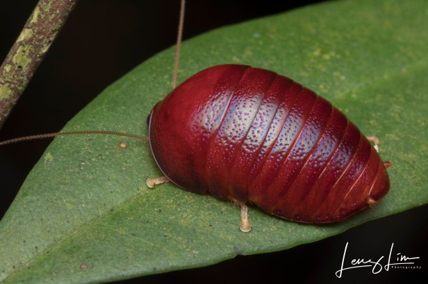 The only cockroach that I’m willing to shoot (to date), the cute Pill Cockroach (Perishpaerus sp) that has just moulted which results in the red colour. They are usually just black. Doesn’t it look like its wearing shades?