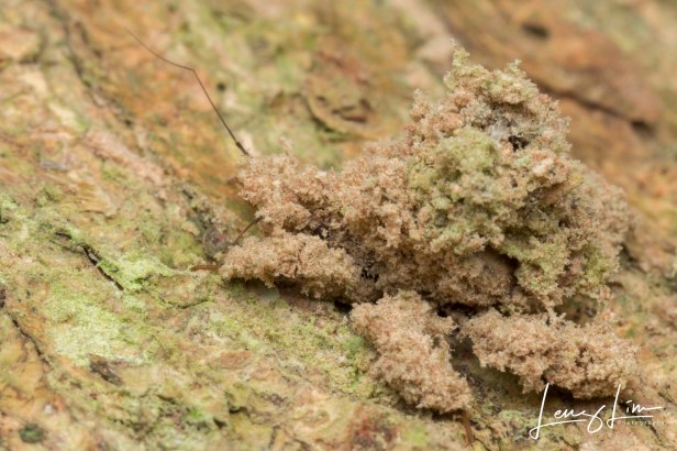 Similar to the Acanthaspis petax, the Masked Hunter excretes a sticky substance where dust and lint from the surroundings settle on its back to provide full camouflage! It probably serves as a deterrent cause I doubt any predator would want a mouth full of dust anyway. Look closely and see if you can spot its eyes! The 2nd shot is the same species shot in Malaysia~ Here are 3 other species we saw that night!